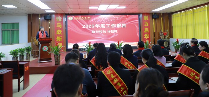 执行校长许信旺作题为《骏马奔腾兴“双高”,笃行实干启新程》的学校工作报告,全面系统地回顾了学校在2025年取得的成绩与“十四五”期间的发展成果,安排部署了2026年重点工作。党委委员、工会主席周宗斌作题为《团结奋进服务职工 助力发展开启新程》的学校工会工作报告。