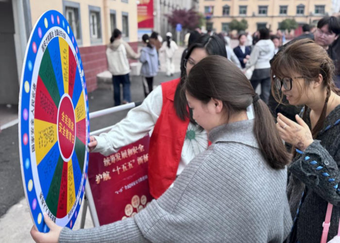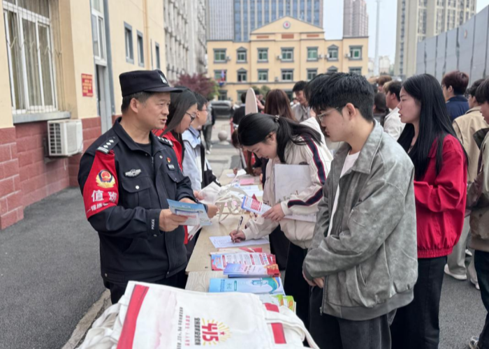 互动体验之外,活动同步开展现场知识宣讲。校团委、保卫处联合锦绣派出所民警,结合校园及社区真实案例,围绕国家安全、反诈防骗、个人信息保护等重点内容展开讲解,剖析常见安全风险隐患,引导青年学子与社区居民增强法治意识与安全防范能力。锦绣社区服务中心、桃源社区居民委员会工作人员也参与现场引导,推动法治理念向社区延伸,实现校地资源共享与理念互通。