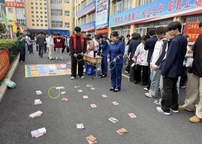活动现场,“统筹发展和安全,护航‘十五五’新征程”的宣传标语与“产教融合 科教融汇 校企合作 职教工场”的校园文化交相辉映,彰显了学院星青年文化育人理念与校地协同的育人成效。各单位分工协作、紧密配合,保障活动有序高效开展,让法治教育从“单向灌输”转向“双向互动”,切实提升了参与者的法治素养与安全意识。