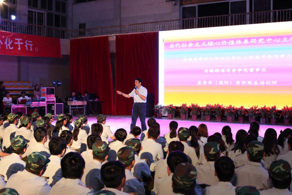 9月6日,安徽当代社会主义核心价值体系研究中心主任、安徽省高等职业院校创新创业联盟常务副理事长、安徽绿海商务学院董事长、星青年(国际)商学院总培训师陈孝云老师为2016级绿海星青年学子上了一堂以“人生因梦想而伟大”为主题的精彩课程。