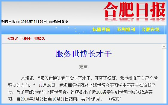 留学移民网 翱翔上海世博园里的绿海职业学院学子
