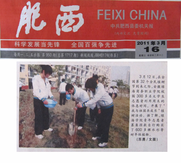 肥西报——绿海学院开展“我与祖国共成长”植树活动