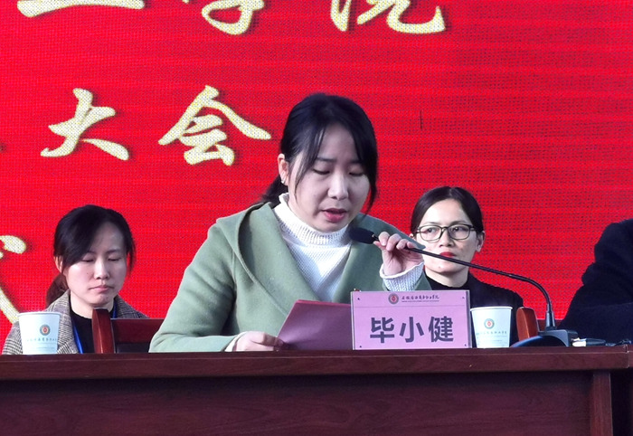 毕小健代表团市委、市学联向大会的召开表示祝贺。毕小健在讲话中充分肯定了我院近年来团学工作所取得的成绩,并就进一步推进团学工作提出四点希望:要进一步强化对青年学生的思想引领。引导和影响青年学生不断增进思想认同,进一步坚定跟着党走特色社会主义道路的共同理想信念,是学生组织的重要任务;要进一步强化对青年学生的力量凝聚。增强学生会对广大同学的凝聚力,是学生会体现自身性质的必然要求,也是学生会提升自身作用的内在需求;要进一步强化对青年学生的成长服务。学生会要牢固树立以学生为本的工作理念,紧紧围绕广大青年学生在学习教育、文化生活、社会参与和权益维护等方面表现出的不同利益需求,广泛开展济困助学、结对帮扶、就业见习等活动;要进一步强化对青年学生的组织覆盖,只有加强学生会的自身建设,扩大对青年学生的组织覆盖,才能增强学生会对青年学生的功能覆盖、服务覆盖和影响力覆盖。