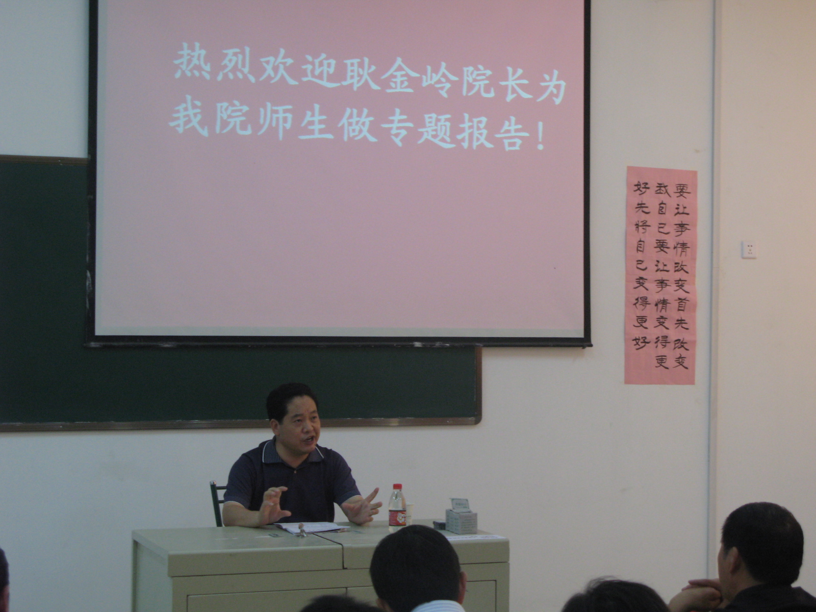 安徽财贸学院的耿金岭院长为大家带来了精彩的报告,他围绕中层干部素质要求、教育教学改革、特色办学、规范化管理、督导评估等问题作了翔实生动的讲解指导。怀着对绿海学院的深厚感情,他还对我院中层干部及青年骨干提出了殷切希望,如要涵养好个人心态、用好四种镜子等等,耿院长的报告使广大教师受益匪浅,博得了现场的阵阵掌声。