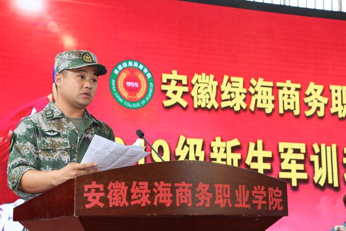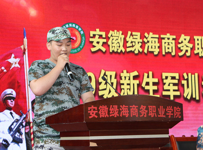 工商管理系新生代表翟锰在会上发言,他表示,军训是磨练意志的练兵场,更是充满挑战的大擂台。我们将以昂扬的斗志和饱满的热情投入到军训中,一切行动听指挥,通过军训提高身体素质,增强国防意识,用勇气和魄力战胜一切困难。