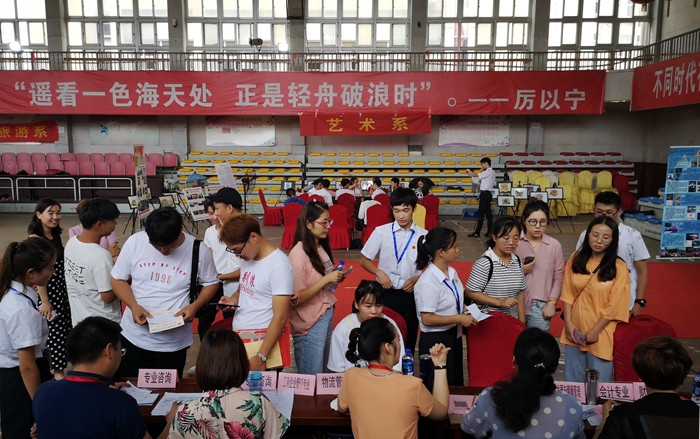 迎新不再仅仅是入学报到走流程,学院精心准备了办学成果展,以全新的姿态迎接新生。校园主干道橱窗内的学院概况、校园文化、系部介绍,吸引了新生及家长的驻足观看。各系报到处也推出了专业介绍和成果展示,艺术系学生的作品秀,引来不少学生及家长点赞。