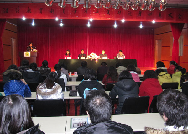 12月9日,我院继续教育部召开自学考试复习迎考动员大会,副院长宋凡、继教部主任刘双九、教务处教务科科长吴昊、继教部全体老师及我院参加2010年1月9日自学考试的学生参会。
