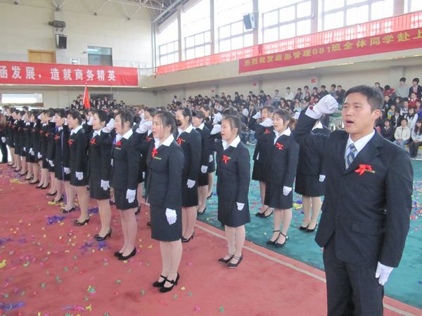 3月23日下午,我院隆重集会,欢送旅游管理081和旅游英语081班近百名绿海学子赴上海世博会顶岗实习。学院董事长陈孝云、院长石秀和、团省委权益部部长戴瑞、团市委学校部部长袁长一及我院常务副院长丁元生等参加了欢送会。