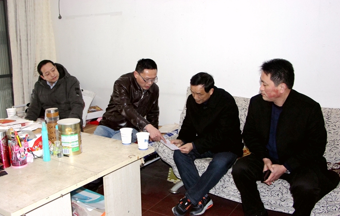 岁末将至,春节临近,1月26日上午,受365集团董事长、党委书记陈孝云委托,督导专员、党委第一书记江传瑞,党委副书记、纪委书记张以亭,党员委员、工会主席周宗斌,宣传统战部负责人苏勇一行4人深入基层看望并慰问患病教职工范贤举,李晓明老师爱人,为他们每人送去2000元的慰问金和新年祝福。
