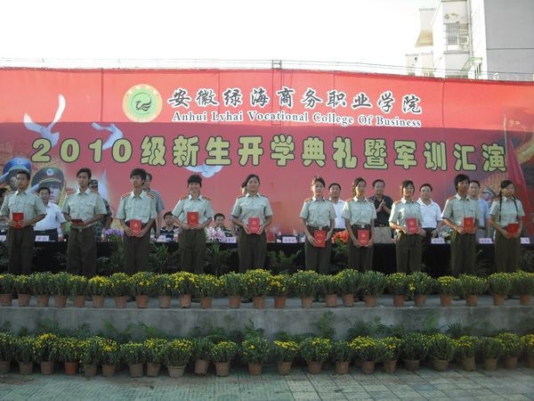 9月20日下午,我院2010届新生开学典礼暨军训汇演在学院塑胶体育场隆重举行。学院董事长陈孝云、副董事长陈孝江、学院党委书记陈钦、常务副院长丁元生等领导出席了汇演,院长助理黄葵主持了汇演。