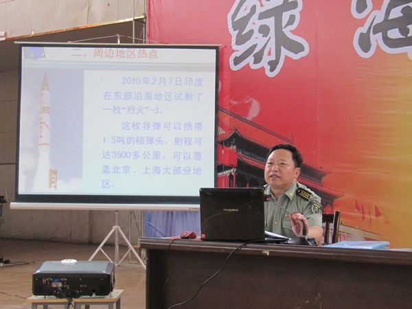 关教授通过生动活泼的形式,分析了我国周边地区的战略形势,指出和平发展是当今时代主题,同时具体地阐述了所面临的威胁,他要求同学们增强国防意识,担负起安全责任,加强组织纪律性,促进德、智、体、美全面发展。寄希望于绿海新一届精英将军事知识、军事技能的训练与政治思想教育、道德品质教育、政策纪律教育、法制观念教育等有机结合起来,成为真正有用的栋梁,翻开绿海发展史上辉煌的一页。