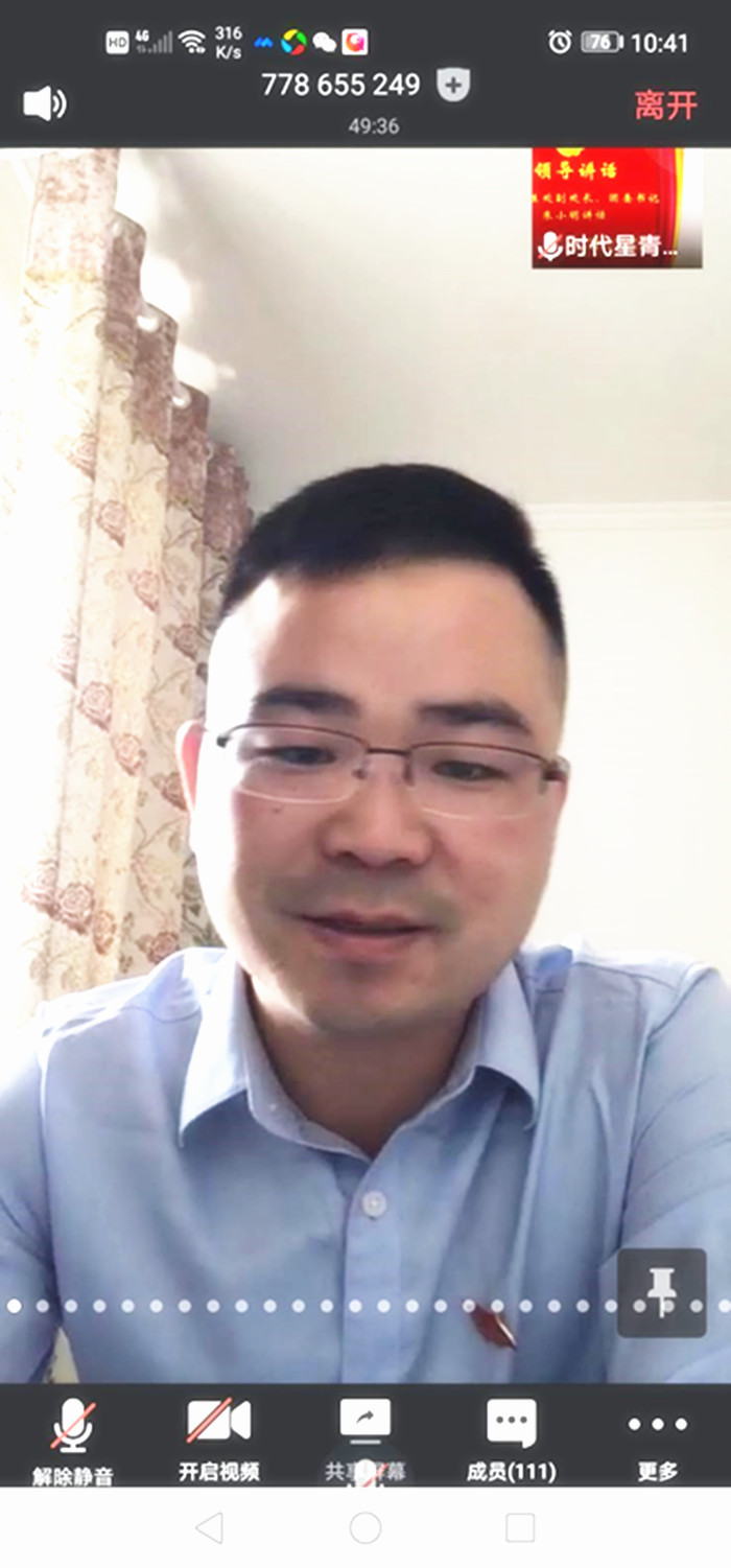 学院学生处副处长、团委书记朱小明为大家上了一节特殊的“云团课”。他表示:百年前,青年为了祖国的前途命运而奔走呼喊;百年后,青年秉承先辈精神冲锋在前投身战疫。疫情期间,广大青年奔赴疫情一线,成为了抗击新冠疫情的主力军。作为新世纪的大学生,我们要树立远大的理想,更好地为现代化建设贡献力量就必须学习学习再学习,打下坚实的知识功底。在学习中,还要善于创新,善于实践,更要注重锤炼品德。