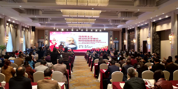 鲁昕作了《马克思主义政治经济学理论始终绽放思想光芒》主旨报告。她从70年取得的辉煌成就出发,以清晰的历史轨迹阐述了在工业、农业、教育、文化、民生、生态等领域上的发展成就,并对《宣言》《资本论》《政治经济学批判导言》《哥达纲领批判》等四部马克思主义经典著作中,关于生产力与生产关系的理论、关于经济基础与上层建筑关系理论、关于社会再生产原理的理论、关于总需求与总供给平衡理论、关于劳动创造价值的理论、关于资本有机构成的理论、关于社会化大生产的理论、关于社会产品分配理论等八个方面的理论,进行了深入全面的解读。