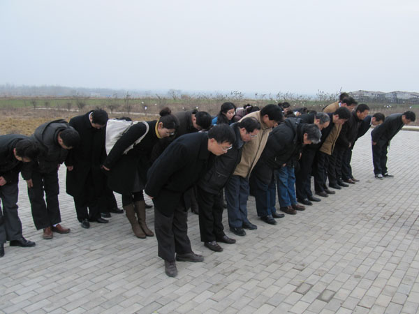 随后,我院参加凭吊的全体师生在沈浩墓前庄严宣誓:“向沈浩同志学习,办人民满意的教育;向沈浩同志学习,做人民满意的教师;向沈浩同志学习,培养当代商务精英。”