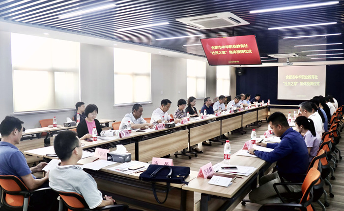9月4日下午,合肥中华职教社在安徽青松食品有限公司研学科普实践教育基地举行“社员之家”集体授牌仪式。合肥市委常委、统战部部长陈晓波,安徽省中华职教社专职副主任李光浩,合肥市委统战部副部长、合肥中华职教社副主任李殊,365集团董事长、党委书记、安徽省当代社会主义核心价值体系研究中心主任、合肥中华职教社副主任陈孝云,合肥职业技术学院副院长、合肥中华职教社副主任周晓隆出席。合肥中华职教社副主任兼秘书长李嘉华主持授牌仪式。