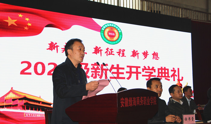学院副院长仇冬在典礼上致辞。他代表全院师生员工对新同学的到来表示热烈欢迎。他说,你们青春阳光,自信从容,给学校注入了新的活力。学院正在推动机制创新,完善内部治理,加强内涵建设,正在向富有特色的一流高校阔步迈进!你们将为选择绿海、加入绿海而无比骄傲自豪!