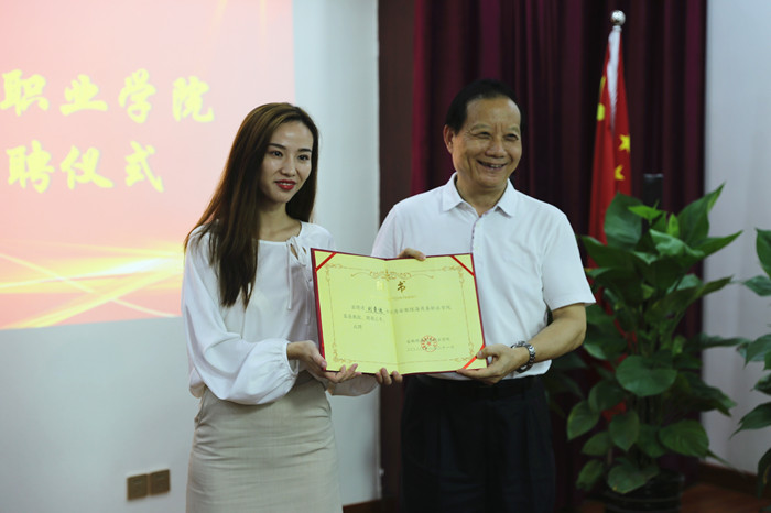会上,学院聘请掌中微视文化艺术院执行院长刘曼迪为客座教授,党委副书记、纪委书记刘兴杰为其颁发了聘书。刘曼迪表示,自己一定会竭尽所能、主动作为,为学校高质量发展贡献力量。