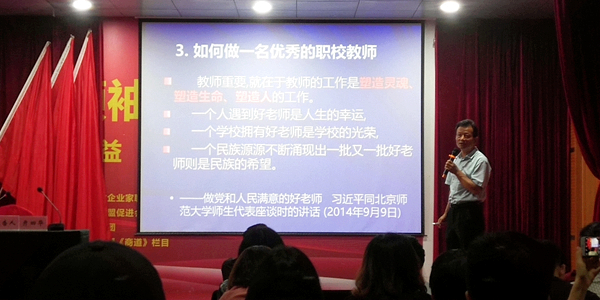 就如何加强内涵建设,亓四华结合自身经历和丰富的办学实践作了重点分析。他认为,专业建设是主线,人才培养方案是抓手,课程建设是核心,师资建设是关键,实训基地是条件,管理文化是保障。专业是学校的品牌和灵魂,专业建设要做好充分的市场调研,对接产业发展,不断优化结构;既要坚守“优势阵地”,精耕细作传统专业,又要紧跟新时代,不断变革,挖掘切合学院实际的专业发展新思路。人才培养上要突出技能培训,强化应用性较强的知识点,淡化学术性较强的知识点,教学生学得会、愿意学、用得上的知识。课程建设上,以课程的开发、课程的实施、课程的评价、课程的管理为主要内容,明确培养目标、优化培养方案、制定核心课程标准、改革教学模式、改革评估体系、建设校本教材为课程改革的主攻方向。师资队伍建设是高职院校建设与发展的关键和灵魂。努力打造一批身正、立志、好学、乐教的“四有”好老师。教师通过深入校内实训场所、大型骨干企业进行技能训练和综合能力提升,参加国内外进修培养,引进企业能工巧匠,提升师资队伍的结构和质量。围绕人才培养方案,建立一批实现学生的能力提升的实训基地。文化是一种力量,一种情怀,一种温暖,一种学校战略。也是教育发展之魂。建设具有职业院校特色的文化。