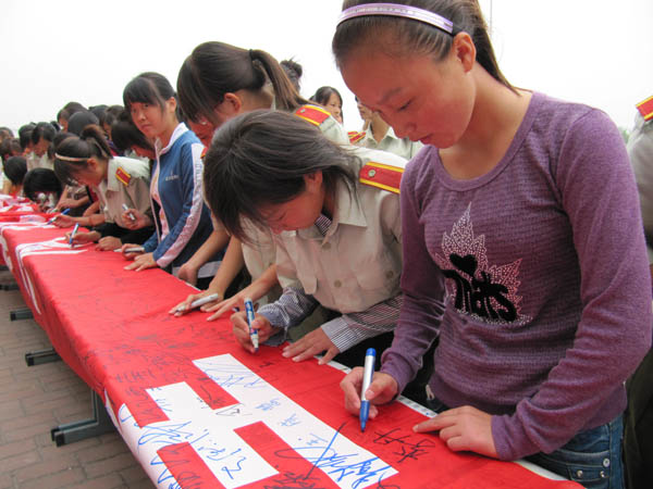 本次主题签名活动受到广大师生员工的热烈欢迎,并踊跃参加签名活动。他们表示:这次活动做得及时,有必要在安乐的环境中,提高警惕,增强忧患意识,为维护安全献出自己的一份力量。学院董事会领导及党政领导也参加了签名活动。