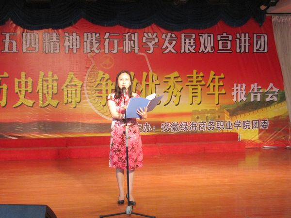 在以“勇担历史使命,争做优秀青年”为主题的报告会中,我院大学生宣讲团成员以质朴的话语、饱满的热情宣讲五四精神的内涵和科学发展观的要义以及“四个新一代”要求。他们发自肺腑的呼唤,真挚流露的感情激励和鼓舞着服刑人员自新,帮助他们重塑理想、恢复信心、坚定信念,从灵魂深处触动他们改造的热情。正如我院宣讲团成员所说的那样,我们青年一代无论置身何处、何境都应坚定理想和信念、自强不息,永不放弃,义不容辞肩负起振兴中华、富强国民的责任和使命,为构建和谐社会,创造美好家园而不懈努力,做祖国合格的“四个新一代”。