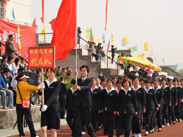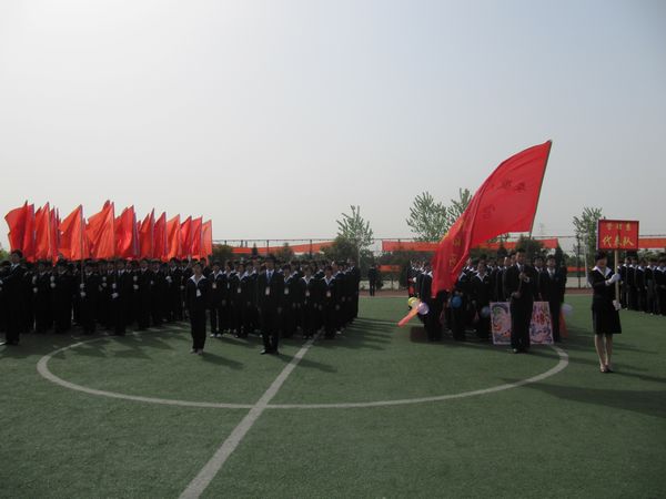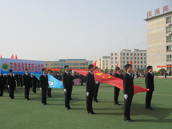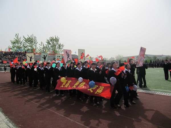 伴随着激昂的运动员进行曲,院国旗队、校旗队、裁判员代表、教师代表队及各系部运动员代表队方阵意气风发入场、他们迈着整齐的步伐走过主席台接受检阅。