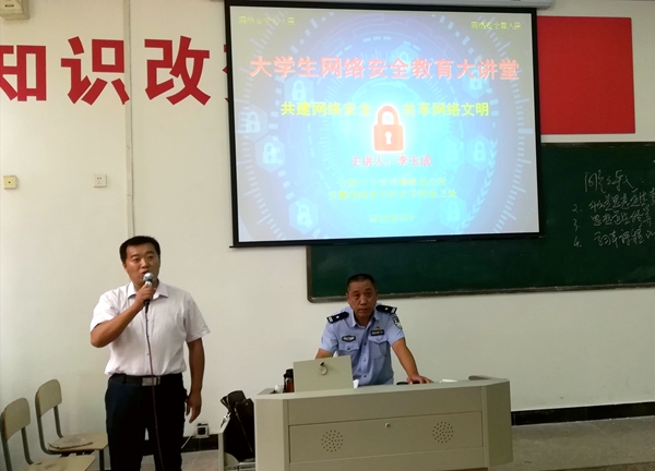 为贯彻落实2018年网络安全宣传周活动要求,切实增强大学生网络安全意识,提升网络安全防护技能,保障师生财产安全,9月19日上午,学院保卫处联合经开公安分局锦绣派出所共同在学院阶梯教室开展“共建网络安全,共享网络文明” 安全教育专题讲座。讲座由学院保卫处处长程光胜主持,李玉成警官主讲。
