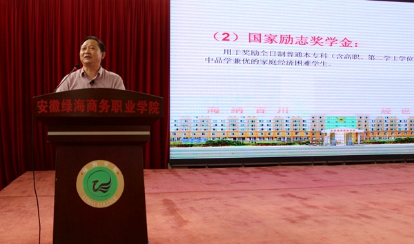 周哲围绕《学生手册》进行校纪校规教育,辅助新生们了解自己所学专业的发展及就业方向,了解专科教育阶段“奖助学金、助学贷款、学费补偿贷款代偿、勤工助学、困难补助、学费减免、绿色通道”等多种方式的资助体系。