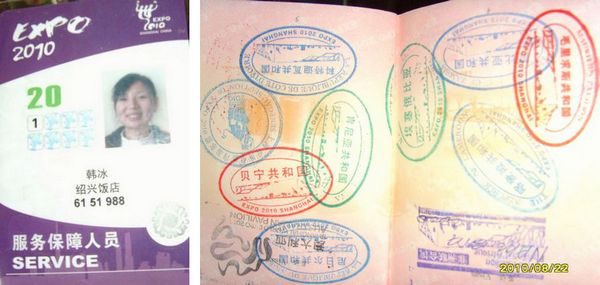 管理系女生韩冰是宿州姑娘,一到大上海就显得异常激动,来到世博园更是高兴得一蹦多高,生怕浪费了宝贵的时间。在那里他们是一天工作一天休息,更给她提供了诸多的学习机会。在女生宿舍,爱好书法的院办张以亭主任不经意中发现了一学生床头摆放了一幅书法,上书:“醉翁之意不在酒,在乎山水之间也”,便拿起欣赏。韩冰发现急忙上去抢夺,羞赧地笑着说:“不好意思,是我学着写的。”问她怎么有空学书法,跟谁在学?她说,她在饭店豪包工作,饭店大堂门厅有一字画间,天天有书画家在此写字卖画,她只要有空,就站在旁边观看,向大师们学习,也试着偷写了几幅。说着,她脸又红了起来。她还告诉我们,她花了两个月的实习补贴买了一部照相机,已在世博园拍了600多张照片放在QQ空间。她还花了30元买了一本世博护照,利用业余时间跑了60多个展馆,在护照上都盖了印戳。当问到有多少学生买了护照,谁跑的展馆最多时,同学们都说,大家都买了护照,胡本娟跑的展馆最多,她已经盖了140多个展馆的印戳。