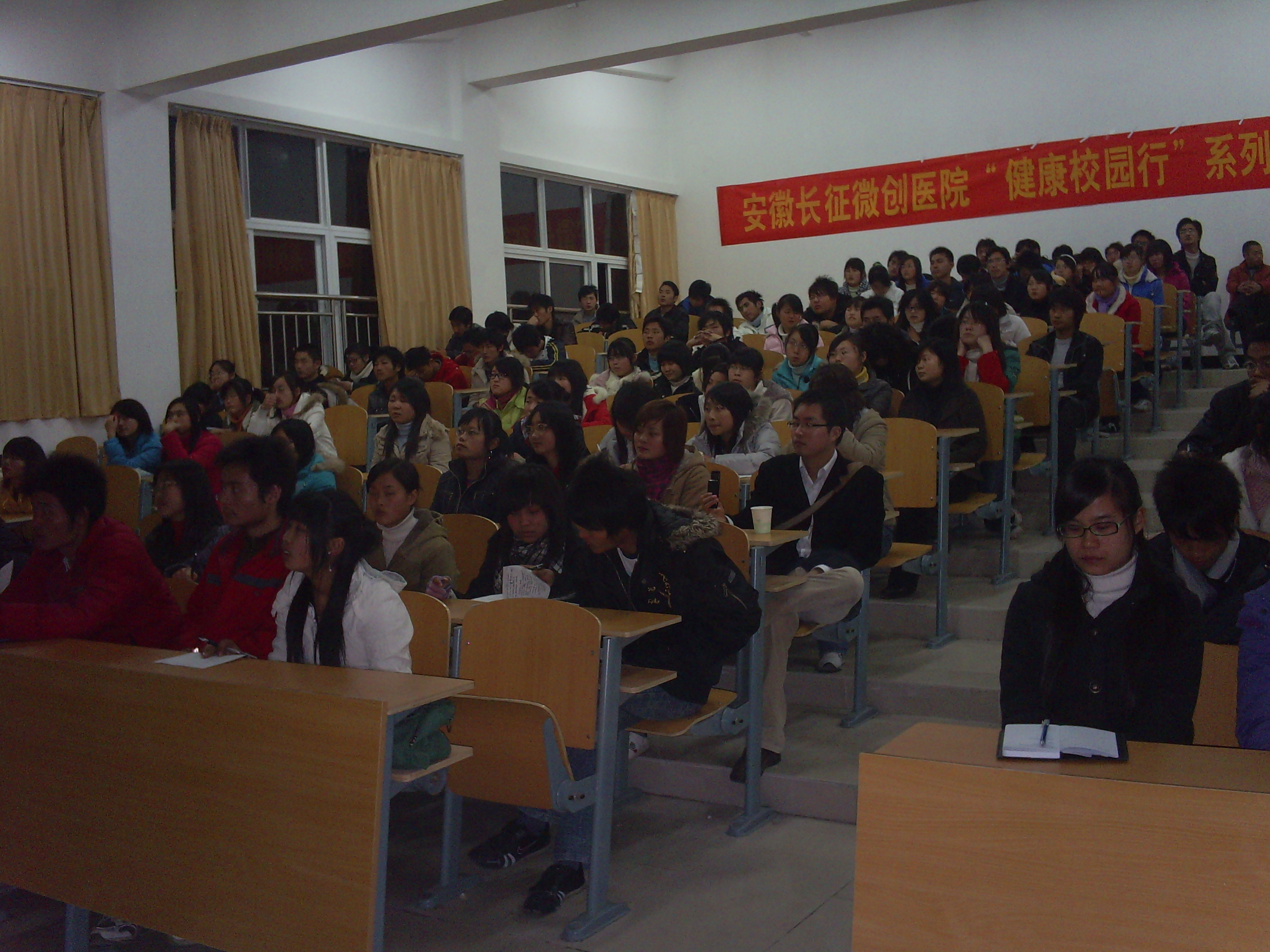 为普及健康常识,指导当代大学生树立正确的健康观念、培养良好的行为习惯,12月17日,我院特邀安徽长征微创医院院长王海燕女士为学生举办“健康校园行”科普知识讲座。活动现场座无虚席。