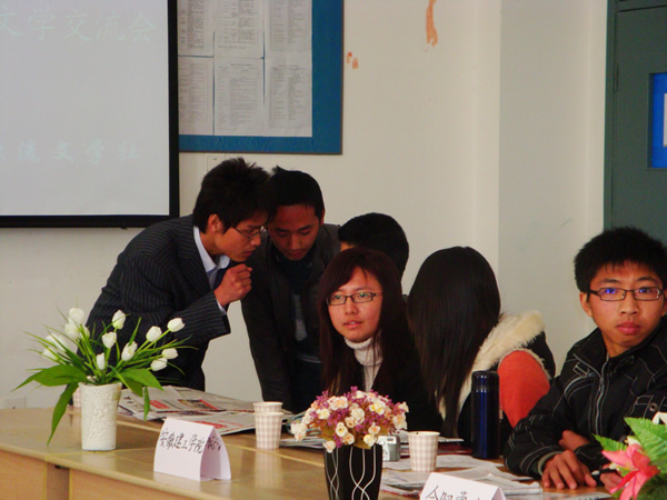 交流会上,各高校文学社团成员着重介绍了各自高校传媒的运作方式,围绕高校文学社团特别是一些自发成立的社团如何才能更好的生存与发展,展开了积极的探讨。我院校报编辑在介绍时说,绿海商务学院作为新办院校,一直本着“低起点、高标准”的要求开展各项工作,相应的宣传工作也积极配合学院的办学方针、政策展开。与会人员在听取我院的宣传工作开展和以后的目标后,对学院的宣传工作给予了充分的肯定。