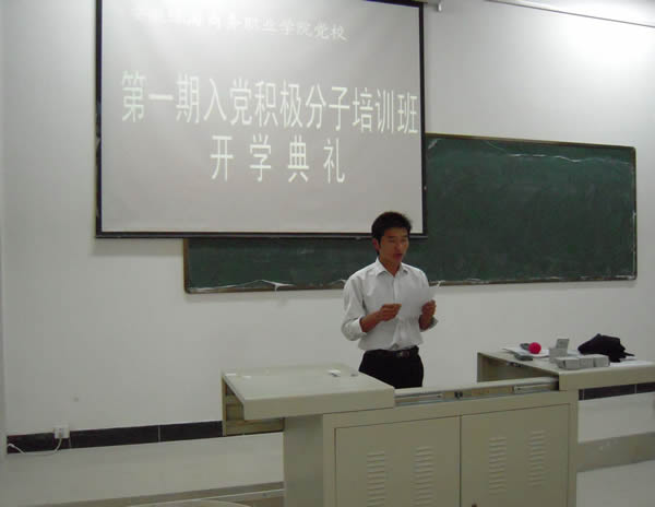 2008年11月3日晚,365集团党校第一期入党积极分子培训班开学典礼在教学楼阶四教室隆重举行。典礼由学院常务副院长、院党支部副书记、党校副校长丁元生同志主持,督导专员、院党支部书记、党校校长祝吉太同志作动员报告,院党群办秘书、党校办公室主任储汉民同志宣布本期培训班组织机构、学习培训计划和学习纪律。外语系团总支负责人戎安、信息技术系团总支负责人张绪川、经贸系团总支负责人兰立刚、管理系团总支负责人辛敏出席了开学典礼。