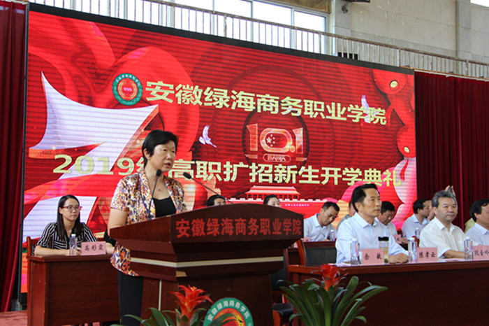 典礼上,动漫181班高书敏同学以2019世界制造业大会志愿者身份表达了对新同学的欢迎。她说,绿海学院作为全省唯一一个高职院校受邀参加了18年世界制造业大会,志愿者们表现出色,展现了绿海学子的风姿,圆满完成各项服务。今年我院再次应邀为世界制造业大会提供志愿服务,这是对我们学生志愿工作的肯定, 也是对我们学院教育教学成果的肯定。此外,教务处副处长张思梅教授在典礼上布置了教学安排,明确新同学的学习方式、考核方式。