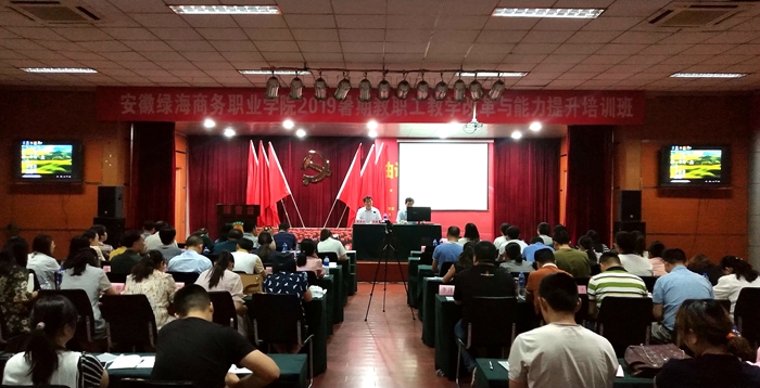 7月11日,365集团2019年暑期教职工教学改革与能力提升培训大会成功举办,学院特邀安徽职业技术学院校长孙敬华、合肥师范学院教务处处长胡昂为全体教职工进行专题讲座。董事长、党委书记陈孝云,党委副书记、纪委书记张以亭,副院长席清才出席大会,学院全体教职工参加了学习培训。