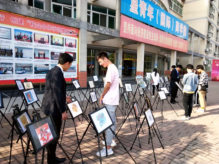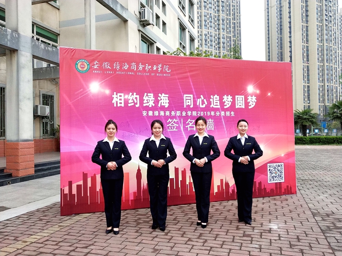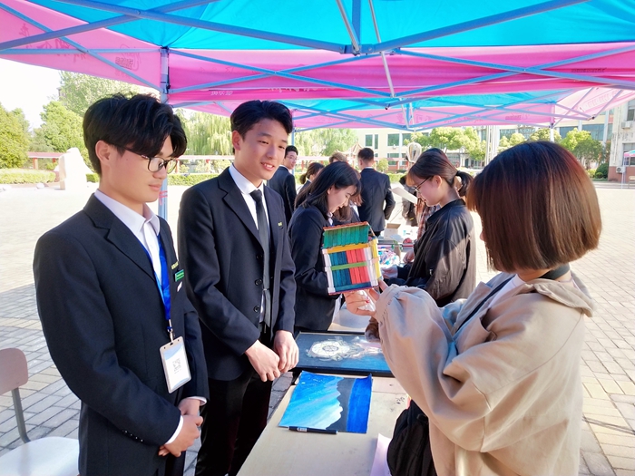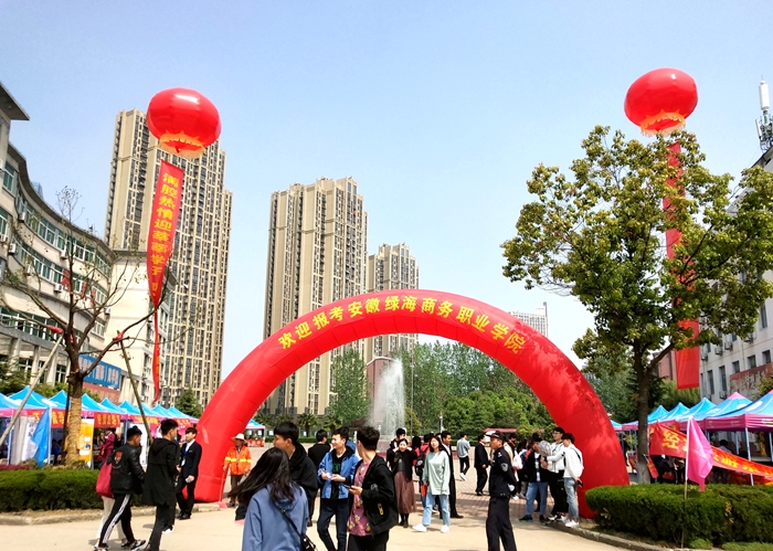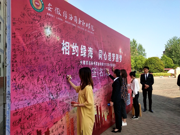 在科技楼广场,艺术系开设了学生艺术创造作品展;经贸旅游系举办了第十一届DIY作品评选活动;无人机表演;有的社团也开展了丰富多彩的展示活动等等,吸引了应考学生及家长的驻足观赏。以“相约绿海,同心追梦圆梦”为主题的签名墙,考生们更是踊跃签名。学生志愿者们穿梭不息,为考生指引路线、解答疑惑、保管物品,带着考生熟悉考场和校园环境。