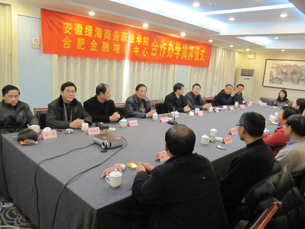 12月16日上午,我院与合肥金融培训中心合作办学揭牌仪式在天都大酒店隆重举行。学院常务副院长丁元生及有相关部门负责人参加了揭牌仪式。