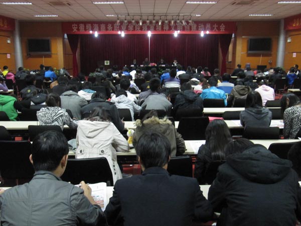 为全面推进我院学生寝室精神文明创建工作,促进学生形成积极健康的精神面貌,12月1日下午,我院寝室精神文明创建动员大会在学术报告厅隆重举行。学院副院长计承光、学生处副处长张绪川、甄晓菲、杨超,保卫处副处长韩镭,团委副书记孙业萍、朱小明,各系(部)团总支书记及全体学生干部等出席动员大会。