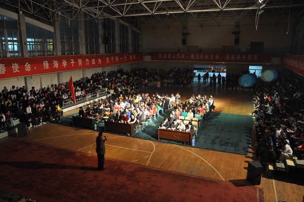 计院长的演讲以号召学生争做“合情合理的人”为开端,明确地向大家提出三点希望:树立人生的目标;感恩之心常在;磨练顽强的意志。他用许多鲜活的案例阐释了人生哲理,胜利与辉煌首先来自对自我的战胜于超越,迈不过自己的这道“坎”,就一定迈不过前进道路上的沟壑,就难以赢得自己头顶上的一方蓝天。计院长勉励大家珍惜校园的学习与生活,从培养自己的良好习惯做起,争取全面发展,为日后的人生道路铺垫坚实的基础。