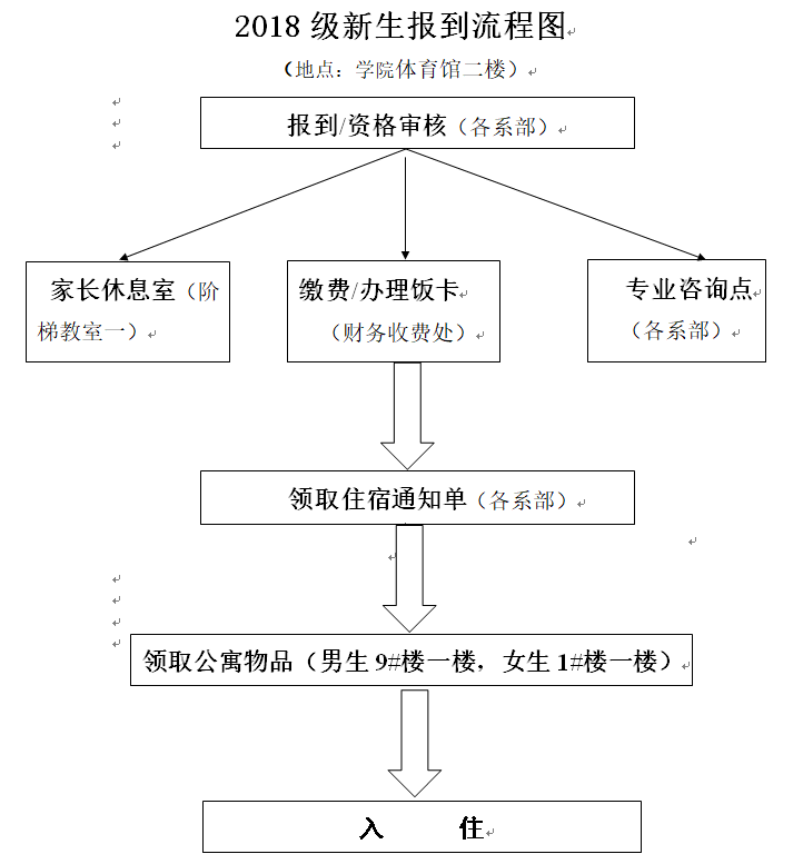 1、凭入学通知书和身份证,到各系部所设报到处报到,认真、准确地填写新生登记表,领取《缴费通知单》和《住宿通知单》 ;
