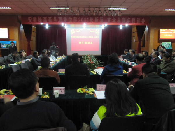12月29日下午,我院学术报告厅内充满了欢声笑语,洋溢着节日的喜庆气氛。2011年新闻界、文学界新年联谊会正在这里隆重举行。学院董事会及党政领导与30多家驻皖、省、市新闻、文学单位的领导、记者、作家欢聚一堂,畅叙友情。