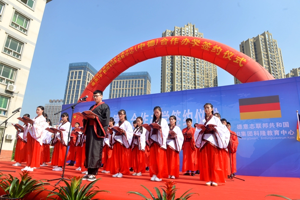 陈孝云和Thomas Wolff代表双方共同签署《中德职业教育•项目合作协议书》。双方约定,365集团将依据德国3.5年制框架教学计划制定物流、商贸、旅游和汽车专业(四年制或五年制模式)专业教学计划。从2018年起,合作项目专业由IB科隆教育中心依据德国“双元”制和德国工商业联合会及手工业联合会职业培训框架计划负责制定专业职业培训教学大纲,分期轮番选派教育教学专家对365集团教师进行培训和课程指导,支持和协调合作项目学生参加德国工商业联合会职业资格考试、鉴定及证书颁发工作。365集团将选派优秀专业教师赴德交流学习,全力支持该项目的工作,以使尽可能多的学生通过相关的考试并得到相应的证书。