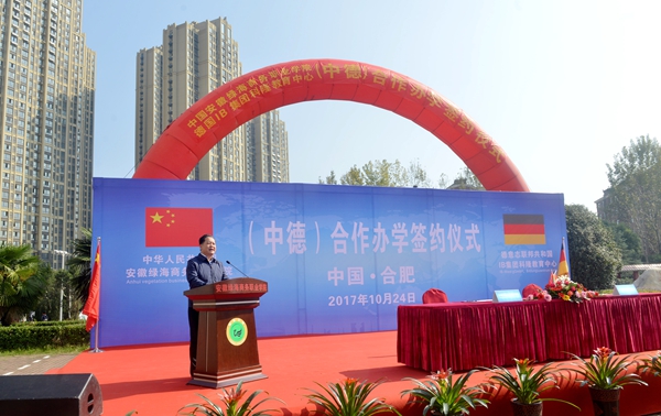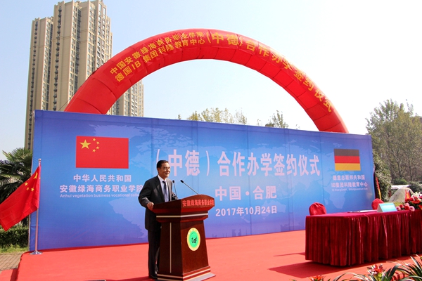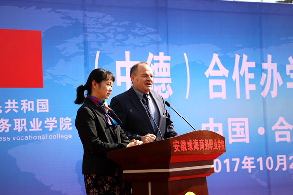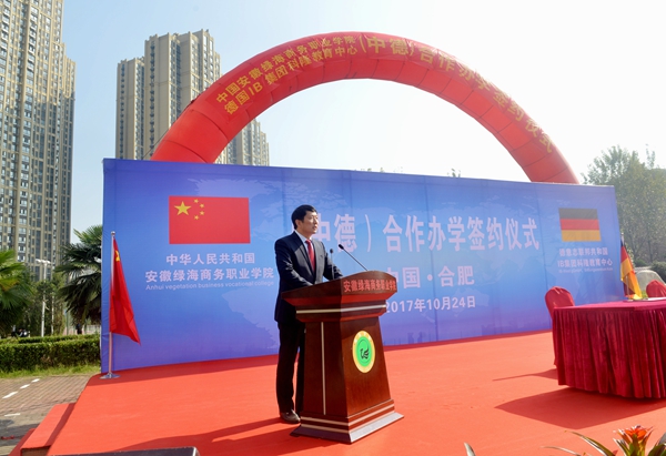 教育部高等教育司原副司长、教育部高等教育教学评估中心原主任刘凤泰,安徽财贸职业学院党委书记、安徽省高等职业院校创新创业联盟副理事长耿金岭分别致辞,对双方合作办学表示热烈祝贺和美好祝愿。纷纷认为365集团是一所有发展前景、有战略思维、有创新理念、有自身特色、有宏大格局、有美好梦想、有责任担当的高等职业院校,表示学习借鉴德国职业教育的发展经验,有利于推进我国职业教育的提质增效,实现绿海学院跨越式新发展。