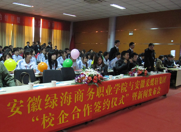 丁元生副院长首先代表我院致辞,他指出,安徽绿海商务学院一直以来坚持利用企业所提供的实训平台,使教学过程更贴近企业的实际需求,真正做到理论联系实际,培养出实践能力强、综合素质高、令企业满意的人才。采蝶轩集团始创于1992年,经过十几年的用心经营和滚动发展,现已成为安徽省烘焙业的龙头企业。集团拥有员工两千多名,名下有采蝶轩、巴莉甜甜、卡乐圈、采之茶等品牌,是一家值得信赖的企业。在培养目标上,我院与采蝶轩集团达成了共识,此次校企合作将实现校企双方资源共享、互利共赢,有利于学校教学改革的深入开展,有利于企业的持续发展,有利于适合现代企业要求的技能型人才的培养。