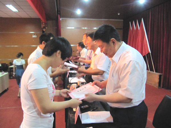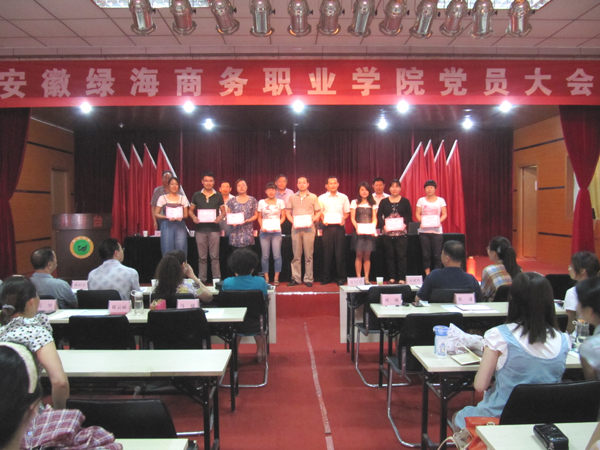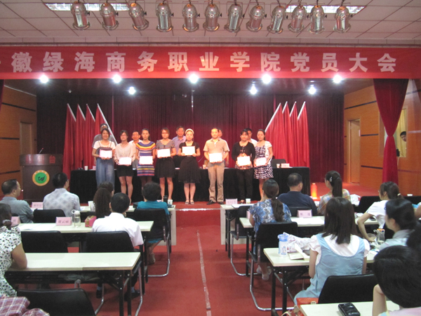 党委书记方世权宣读了学院党委《关于表彰2012—2013学年度先进基层党组织和优秀员的决定》,决定授予经贸系党总支、基础部党支部等9个单位为先进基层党组织荣誉称号,授予张洁等11名同志为优秀员荣誉称号。与会领导为获奖单位和个人颁发了荣誉证书。