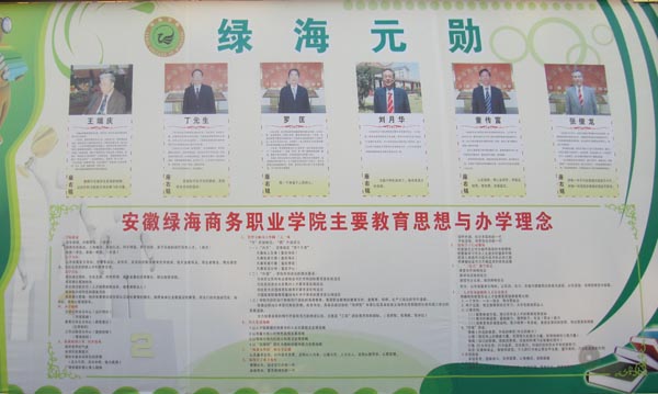 “笑脸文化墙”建成后,一时间成了学院最亮丽的一道风景线,经常停驻了一批批人群,他们在寻找自己的笑脸。笑脸墙以书籍为背景,通过100多张笑脸组成了“绿海”两字,体现了全体师生员工队伍在求知道路上的凝聚力和向心力。100多张笑脸中,有刻苦学习的学生、兢兢业业的老师、默默无闻的保洁和厨师们……他们是学院最普通的人群,也是最具有力量的人群。他们灿烂的笑容,抒发了全院近6000名师生员工忠诚于党的教育事业的共同心声。