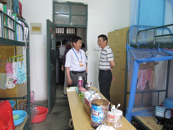 汇报会后,专家组重点查看了学校的自检自查材料,并深入实地,对图书馆、实验实训室、食堂、学生宿舍、运动场及校园环境进行了全面地考察。