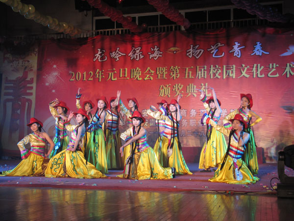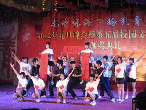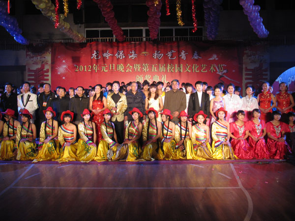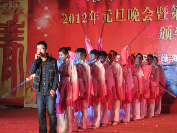 12月28日晚, 学院体育馆内欢声笑语、掌声雷动。歌如潮、人如海,整个体育馆成为了欢乐的海洋。我院“龙吟绿海,扬艺青春”2012年元旦晚会暨第五届校园文化艺术节颁奖典礼在此隆重举行。学院党政领导及千余名师生共同参加了此次盛会。