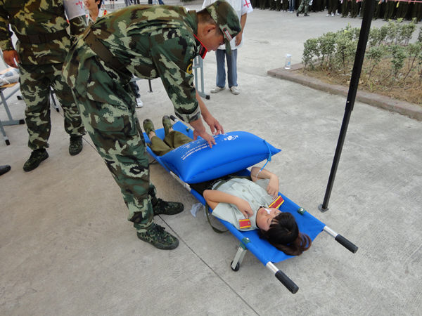 救护人员对“受伤”学生进行救护