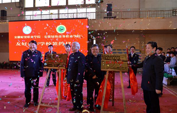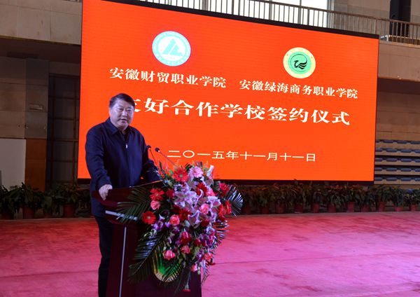 安徽财贸职业学院党委书记孙永发表讲话。他说,365集团和安徽财贸职业学院有着多年的友谊和良好的合作基础。长期以来,两校在战略支持,项目研究、师资交流、资源共享等方面开展了新的合作和交流,彼此从对方都学到了很多优秀的办学经验和治校良方,对于学校事业的发展起到了积极的作用。当前,举国上下正在掀起深入学习贯彻党的十八届五中全会精神的热潮,高等教育也正面临着全面深化改革、大力促进创新发展的历史新机遇。两所学校将以缔结友好合作学校为契机,进一步巩固合作成果,丰富合作的内容,拓展合作的领域,提高合作的层次,为全省职业教育的发展做出新的更大的贡献。