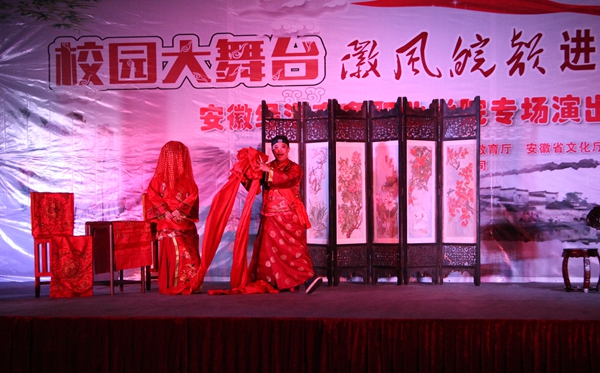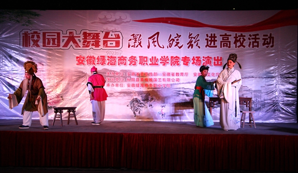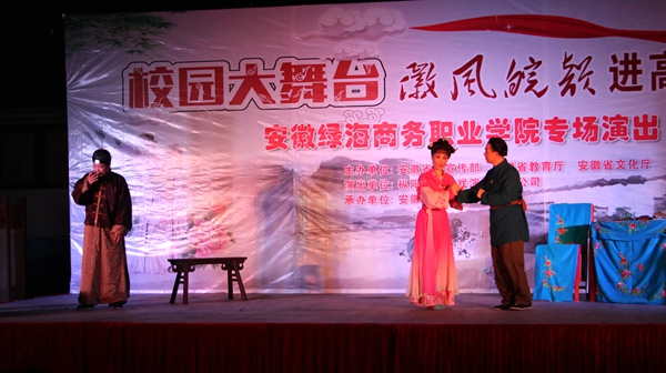 10月26日晚,由省委宣传部、省教育厅、省文化厅联合主办的2017年“校园大舞台——徽风皖韵进高校”活动在365集团举行,来自铜陵市枞阳县黄梅戏艺术团的艺术家们为绿海学院师生带来一场精彩的视听盛宴。