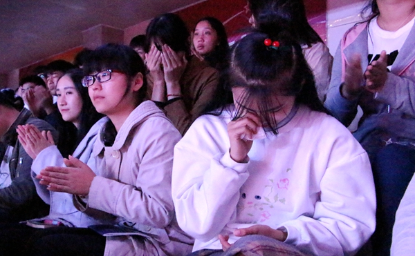 母亲怀胎十月,每日担心受怕,厌食呕吐,辗转难眠,待到分娩之时,遭受的痛苦连成年男子也无法承受,阵痛昏厥甚至会长达几天,生下我们后第一件事竟是关心我们是否健康,脸上立刻展露出欣慰的笑容,而忘了刚刚所经受的痛苦。在长达一年多的哺乳期,每日喂奶喂水,寒暑相继,不辞辛劳,可我们在长大懂事前,除了哭闹却什么也不会。父爱如山,母爱似海,一幕幕真实的案例,一幅幅动人的图片,师生无不动容神伤,潸然泪下。“今天是感恩的日子,亲爱的妈妈,感念您的深恩无以为报,让我抱抱你吧,捶一捶你的腰身,梳一梳你的白发,让儿为你做点微不足道的报答。”一曲《一生报答》更是将报告会氛围推向高潮,掌声不断。